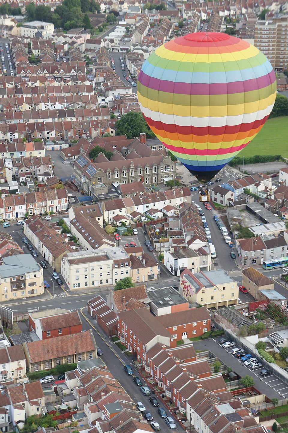 Heated air inside the balloon is less dense than the surrounding cooler air, creating buoyancy.