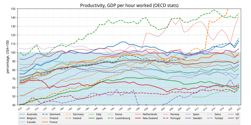 The battle between efficiency and worker well-being shapes global productivity trends